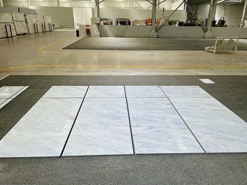 Wow Stone a plus de 1 000 mètres carrés de dalles de marbre en cristal bleu et de blocs à portée de main, afin qu'ils puissent gérer les projets de n'importe quelle taille. Nous vous laissons regarder des dalles sur vidéo directement afin que vous puissiez les choisir à distance. Ceci est pratique et les garanties peuvent être comprises. Notre usine contient un équipement moderne et un personnel professionnel engagé à bien faire les choses et à une meilleure qualité.