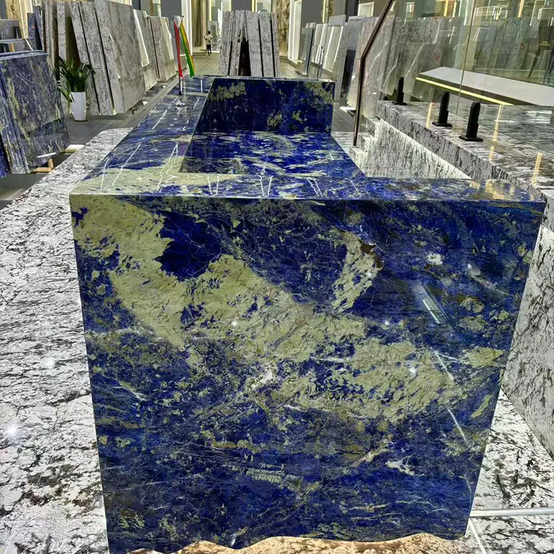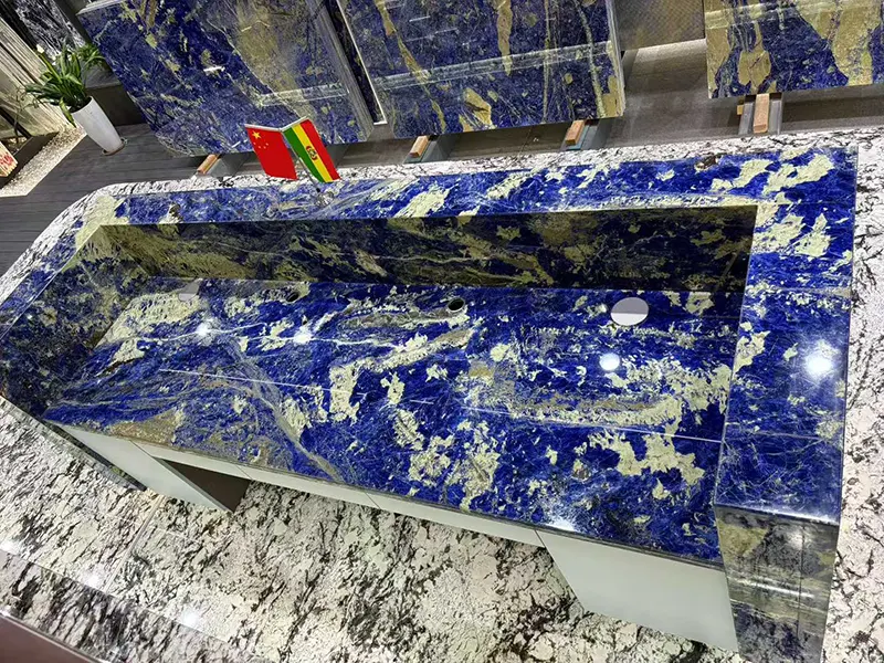 Voici quelques raisons de choisir Wow Stone pour vos besoins en granit bleu de la Bolivie. Bien que nous soyons une entreprise chinoise, nous sommes extrêmement bien informés sur l'industrie des pierres. Plus de mille mètres carrés de dalle de granit bleu de la Bolivie sont prêtes pour vous. Vous pouvez même utiliser un appel vidéo en ligne pour voir comment ils apparaissent. Nous avons des années d'expérience dans la production des plus belles dalles de granit de sodalite bleu parce que nous avons notre propre usine. Veuillez nous faire savoir si vous avez un concept unique pour un dessus de vanité en granit bleu ou un dessus de table en granit bleu. Nous pouvons l'accomplir et créer une variété de conceptions de pointe. Nous sommes disponibles 24h / 24 pour répondre à vos demandes. Des échantillons gratuits vous seront envoyés, des dessins gratuits et des rendus seront créés, et notre personnel relevra chaque élément pour assurer la perfection. Pour faire livrer votre pierre directement à votre porte, nous collaborons également avec d'excellentes compagnies maritimes. Nous allons même vous offrir une assurance gratuite. Lorsque vous achetez une pierre de Wow Stone, vous achetez également la tranquillité d'esprit.
