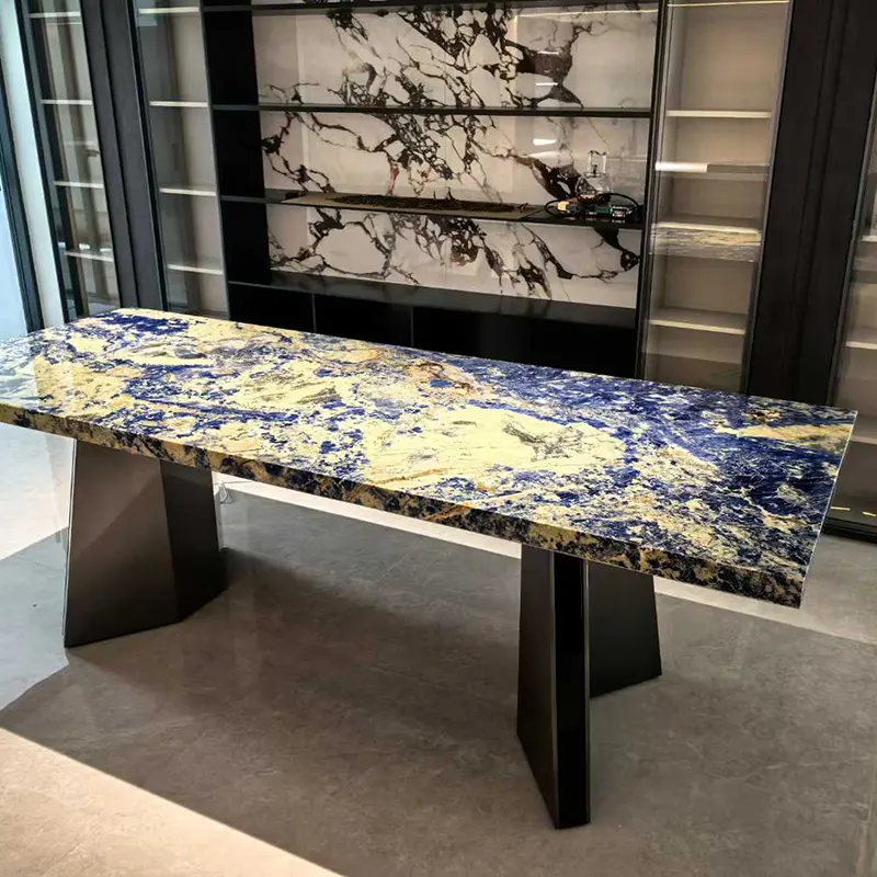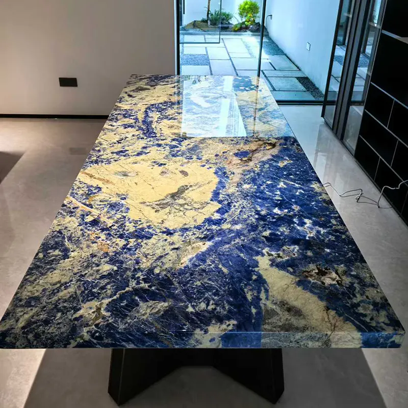 Le sol en granit bleu, l'îlot de cuisine en granit bleu, le dosseret en granit bleu et même la table à manger en granit bleu sont tous appropriés pour une utilisation dans les applications à domicile et aux affaires en raison de sa polyvalence.