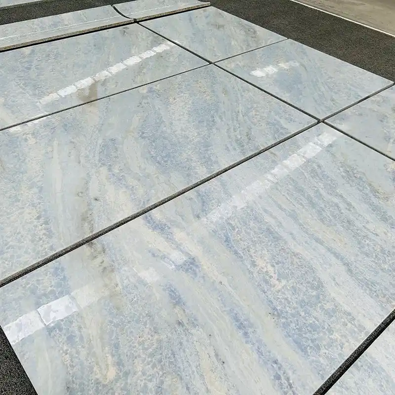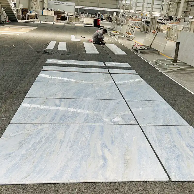 Le marbre supplémentaire bleu de calcite, un marbre brésilien, est un matériau unique et captivant qui parle des sens. Sa couleur de base bleu pâle et ses veines de cristal blanc et bleu naturels créent un motif frappant. Ce matériau unique est de plus en plus populaire dans les maisons haut de gamme, les hôtels de boutique et le décor moderne en raison de son apparence élégante mais non voyante. Nom du produit: carreaux de mur en marbre supplémentaires bleu calcite Factory: Xiamen Wow Stone Co., Ltd. Pays d'origine: Brésil MOQ: 20 m2 Surface: polie, perfectionnée Usages: polyvalent pour la décoration intérieure et extérieure, couramment utilisé dans les carreaux de paroi et de sol, les comptoirs, les hauts de vanité, les escaliers, les colonnes, les mosaïques, etc., ce qui le rend idéal pour divers projets de construction et de conception.