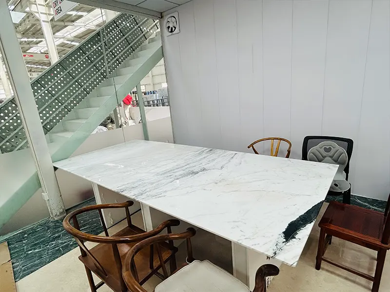 La durée de vie de chaque Table Top est augmentée par notre équipe de production en utilisant des techniques de vitrage et de laquer mûre. Nous fournissons des services de personnalisation approfondis couvrant la conception numérique à la livraison des portes. Nous personnalisons chaque produit à votre besoin exact, qu'il s'agisse d'une table de marbre de bureau chic ou d'une grande table à manger en marbre panda pour votre maison.