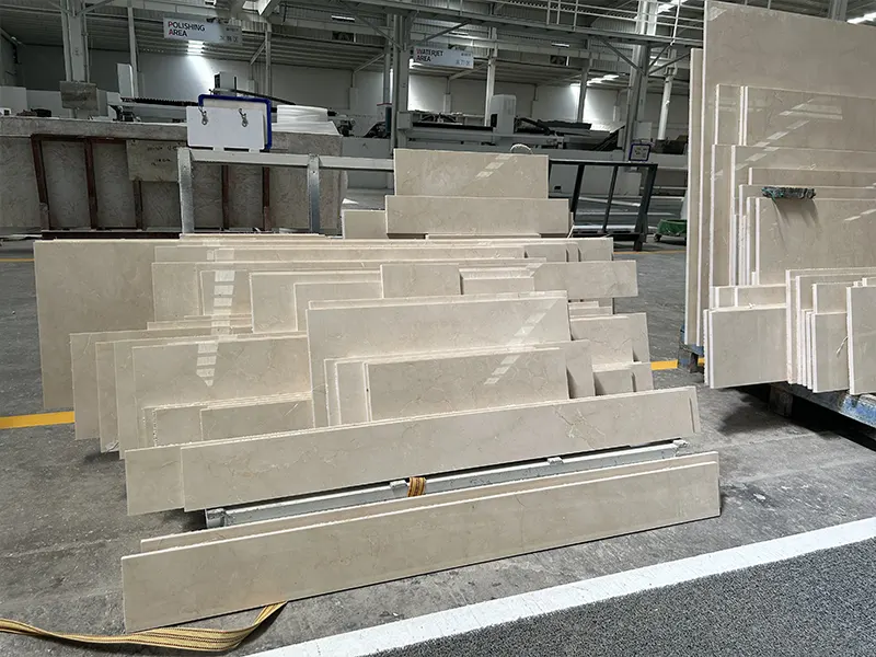 Les carreaux de marbre royal Botticino pour les murs et les sols donnent une cohérence de conception. L'aspect unique et ininterrompu peut être obtenu en utilisant le même matériau pour les murs, les sols et même les escaliers. Royal Botticino crée un sentiment de permanence et de majesté ainsi que de beauté lorsqu'il est utilisé dans le revêtement mural des carreaux de marbre.
